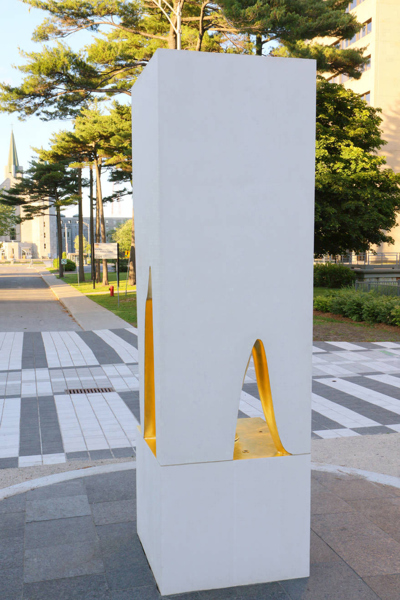 En 2017, afin de souligner le 350e anniversaire de l'Université Laval ainsi que sa 7e grande campagne de financement, les membres du collectif PLUX.5 ont créé ce monolithe intriguant qui allie modernité et tradition. Le monolithe abrite une capsule temporelle qui sera sellée une fois que les 100 associés de la campagne de financement, intitulée «Grande campagne», y auront inséré un document de leur choix. Fermée pour une période de 350 ans, la capsule ne pourra donc être ouverte avant l'année 2367.