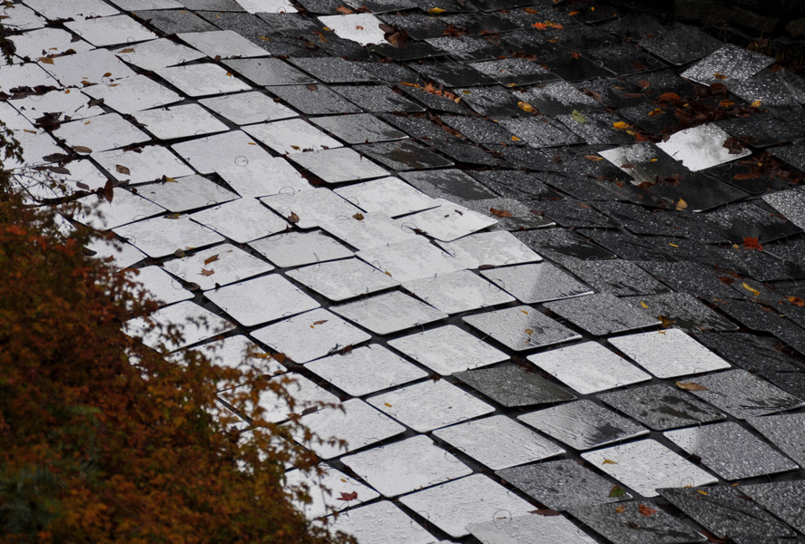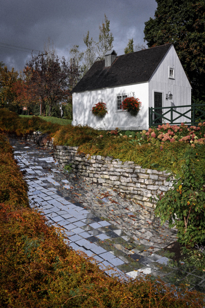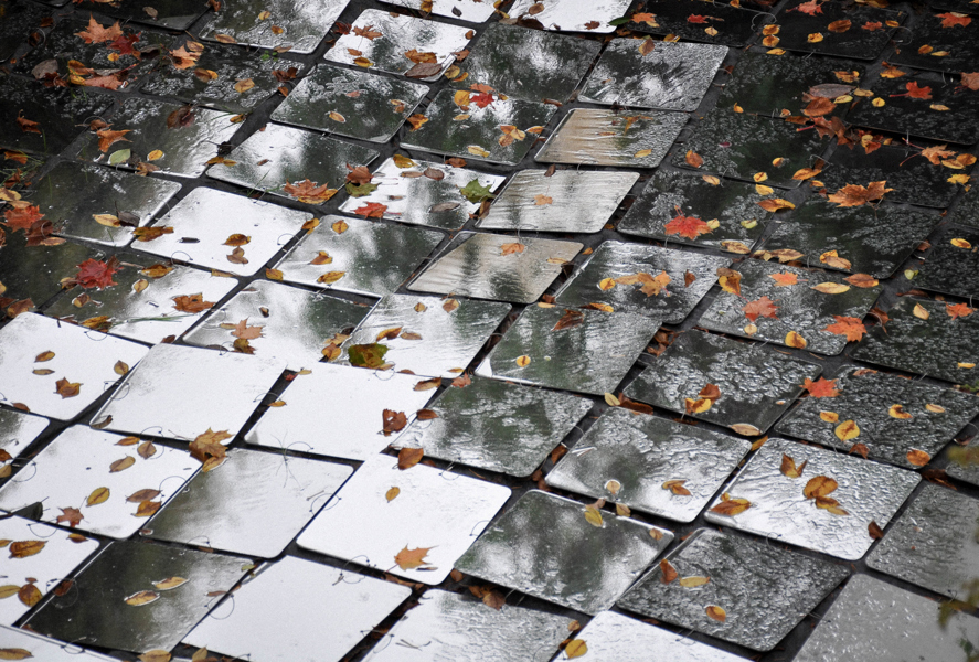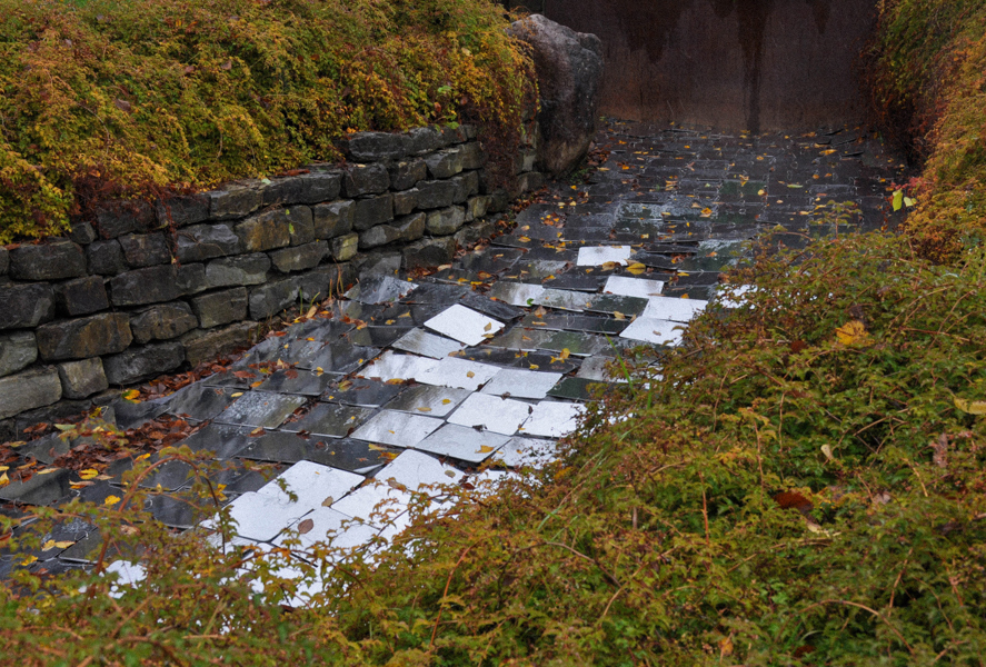 Ces milliers de plaquettes réfléchissantes épousent le lit de la rivière qui jadis activait un moulin à farine. Comme les gouttelettes qui composent les cours d'eau, chaque fragment dévoile son potentiel lorsqu'il est juxtaposé à ses semblables. Une fois ces fragments rassemblés, leurs arêtes droites s'estompent. Elles laissent place à une multitude de points scintillants qui se déploient en une étendue sinueuse et apaisante.