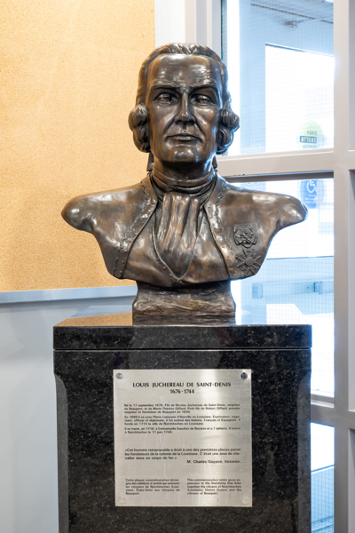 Né le 17 septembre 1676, Louis Juchereau de Saint-Denis est le fils de Nicolas Juchereau de Saint-Denis, seigneur de Beauport, et de Marie-Thérèse Giffard. Il est aussi le petit-fils de Robert Giffard, premier seigneur et fondateur de Beauport. En 1699, il se rend en Louisiane avec Pierre Lemoyne d'Iberville. En 1714, il fonde la ville de Natchitoches, s’y marie à Emmanuella Sanchez de Navarro, avec qui il aura 7 enfants, et y meurt en 1744. Explorateur, négociant, officier et diplomate, il est estimé des Autochtones, des Français et des Espagnols.