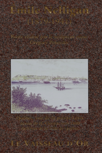 Cette oeuvre fait partie d'un duo de bustes qui témoignent de l’amitié qui unit depuis 2002 les villes de Québec et de Saint-Pétersbourg, toutes deux inscrites au patrimoine mondial de l’Unesco. Celle-ci représente le poète québécois Émile Nelligan, dont le célèbre poème Le vaisseau d’or est gravé sur le piédestal. L’autre honore le grand poète russe Alexandre Pouchkine.