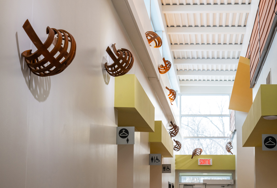Cette installation est composée de 17 éléments ayant l’apparence de bestioles. Celles-ci longent les murs du corridor central, formant un parcours sinueux et rythmé que le regardeur est invité à suivre.