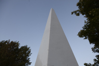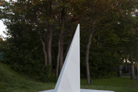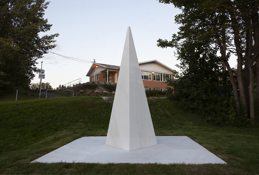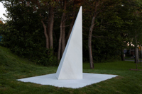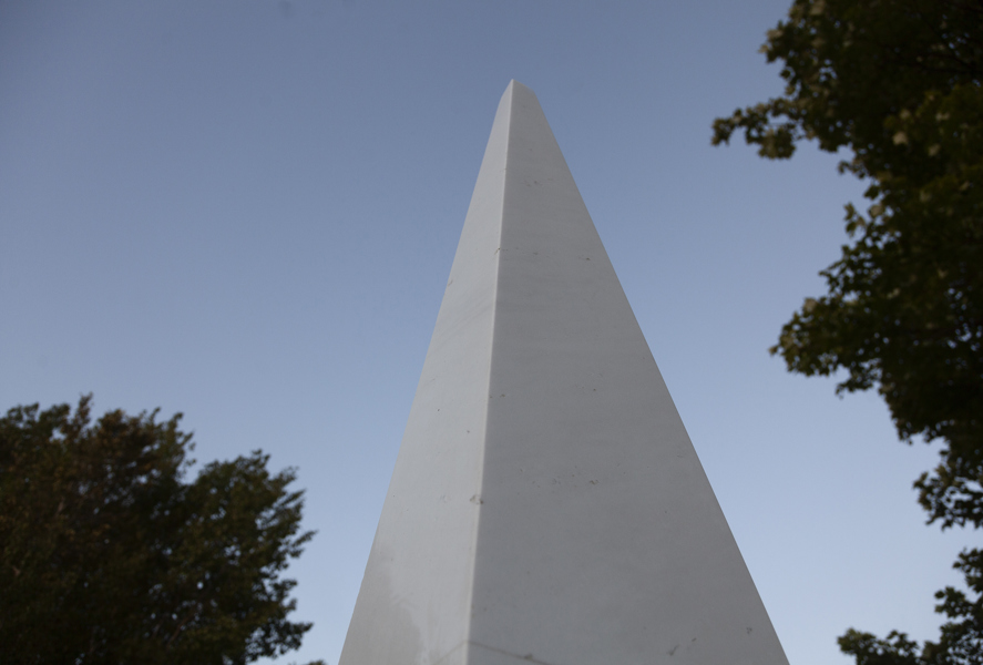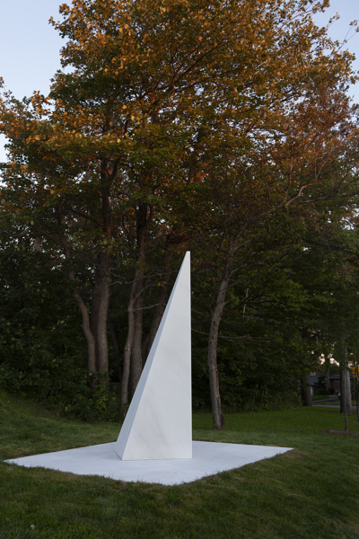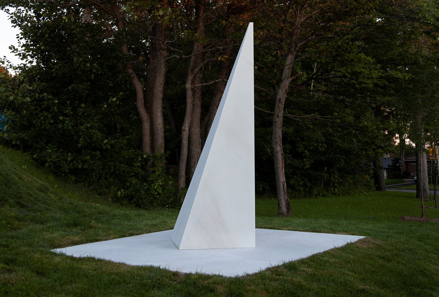 Posé sur une surface de marbre blanc, qu’il partage avec le visiteur, le monument s’élève, insaisissable, vers l’immensité. Alors que la couleur des arbres et la lumière retentissent sur le marbre, teintant légèrement sa blancheur, on oublie la taille imposante de l’œuvre pour s’ouvrir en douceur aux subtilités de l’environnement.