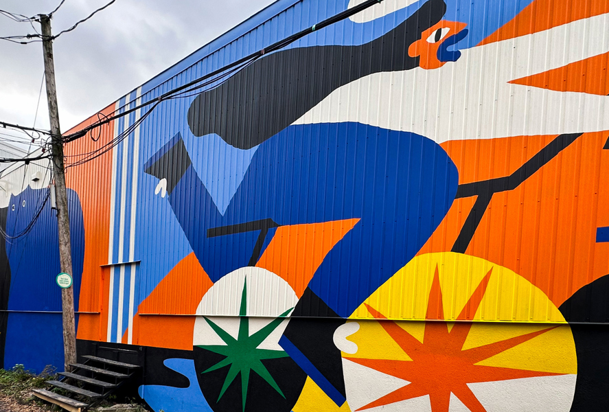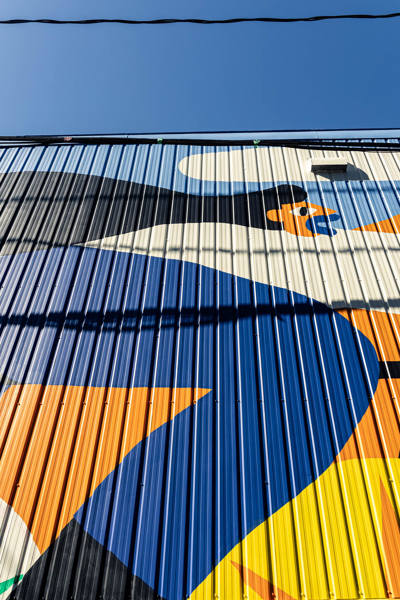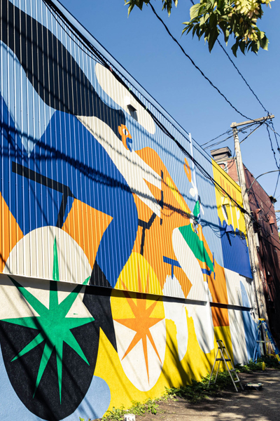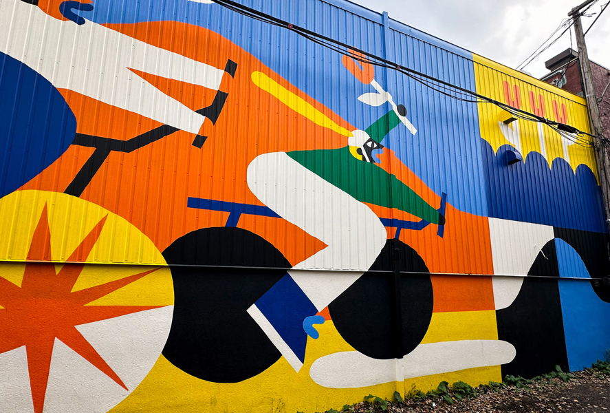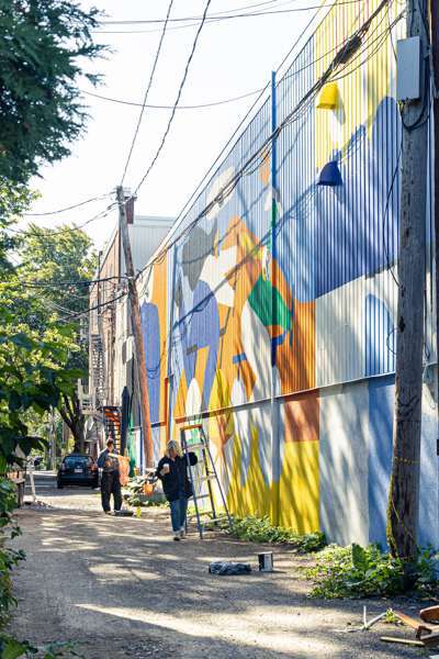 Égayant une des nombreuses ruelles de Limoilou, cette murale arborant cyclistes et chats de ruelle est un véritable hymne au quotidien tel que vécu par les résidents du quartier.