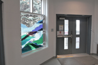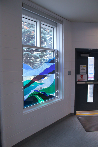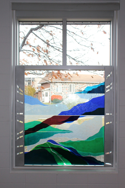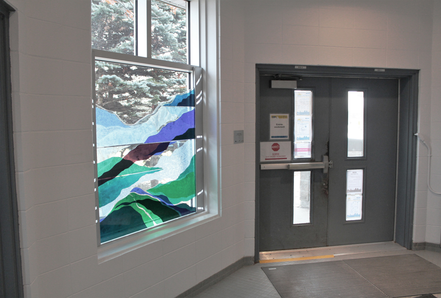 Ce vitrail a été réalisé dans le cadre de la Politique d'intégration des arts à l'architecture et à l'environnement.