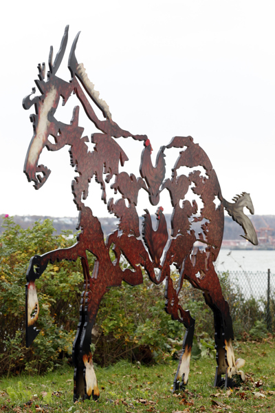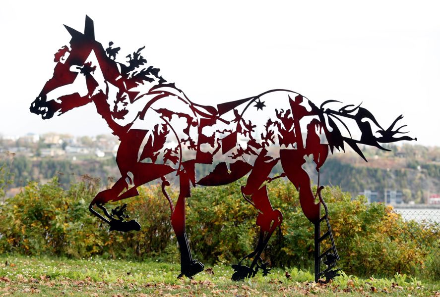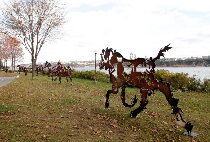 Huit chevaux en acier semblent galoper le long du fleuve et du boulevard Champlain. Leur silhouette est dynamisée par des motifs ajourés reproduisant des scènes et des personnages de l’histoire du pays. Une plaque commémorative souligne l’importance qu’a eue le cheval dans le développement de la Nouvelle-France et de l’Ouest canadien. L’œuvre est un don de la Ville de Calgary et du Calgary Stampede.