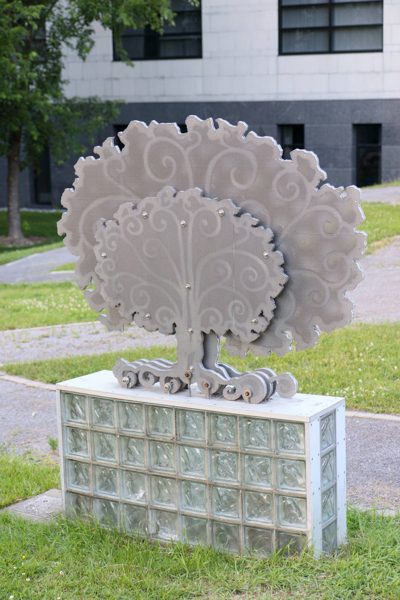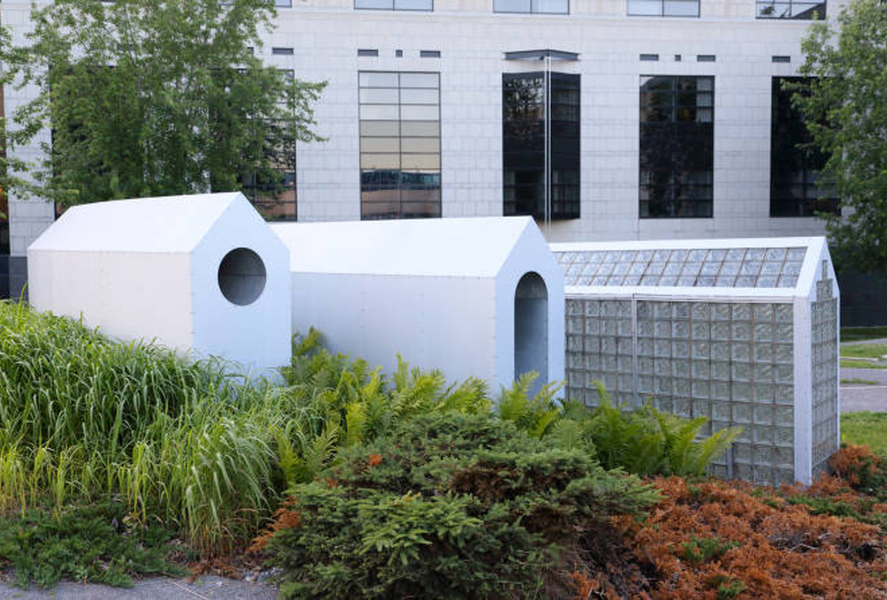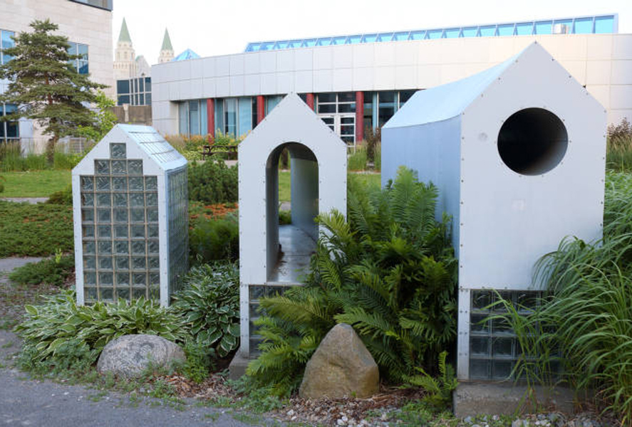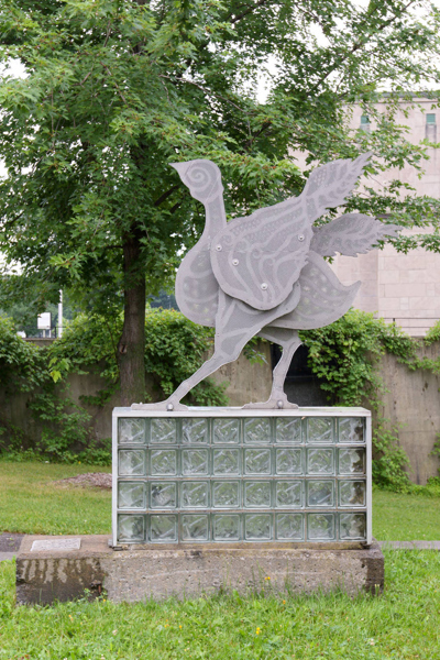 La sculpture est composée de dix éléments qui font référence à la mythologie ou au monde moderne. Ces éléments sont une cage d'oiseau, une niche à chien, une serre, un homme ailé, un homme-chien, un homme-chien ailé, une pierre de jardin, puis les figures archétypes de l'oiseau, du chien et de l'arbre. Ceux-ci sont disposés le long de deux sentiers en forme de spirale qui convergent vers le centre du jardin et où s'entrecroisent également quatre allées rectilignes.