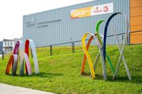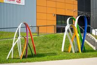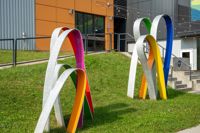 Les trois groupes d’arches, argentées à l’extérieur, colorées à l’intérieur, vibrent dans la lumière et se transforment selon l’angle de vue. Légères et souples telles des graminées, elles semblent surgir du sol pour animer l’allée piétonne et accompagner les gens jusqu’à l’entrée.