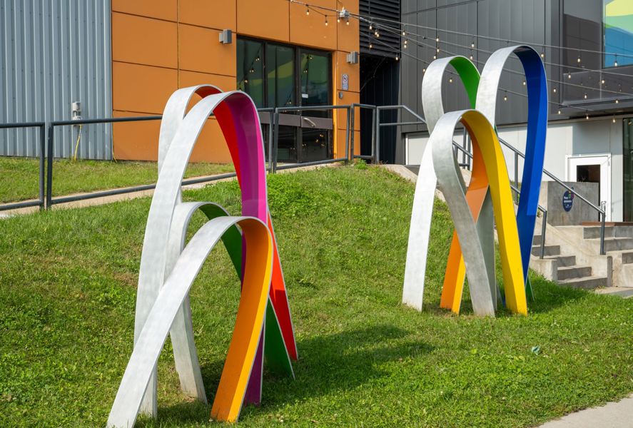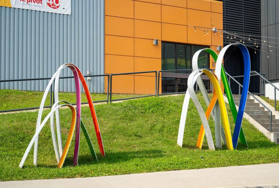 À partir de la symbolique du ruban, cette œuvre d’art évoque l’importance du lien social et le rôle vital que tient chaque personne dans la communauté. Les formes rubanées se croisent et se renforcent mutuellement, exprimant les valeurs d’entraide, d’échange et de solidarité qui sont la raison d’être du centre communautaire des Chutes.
