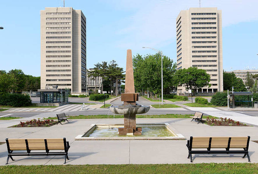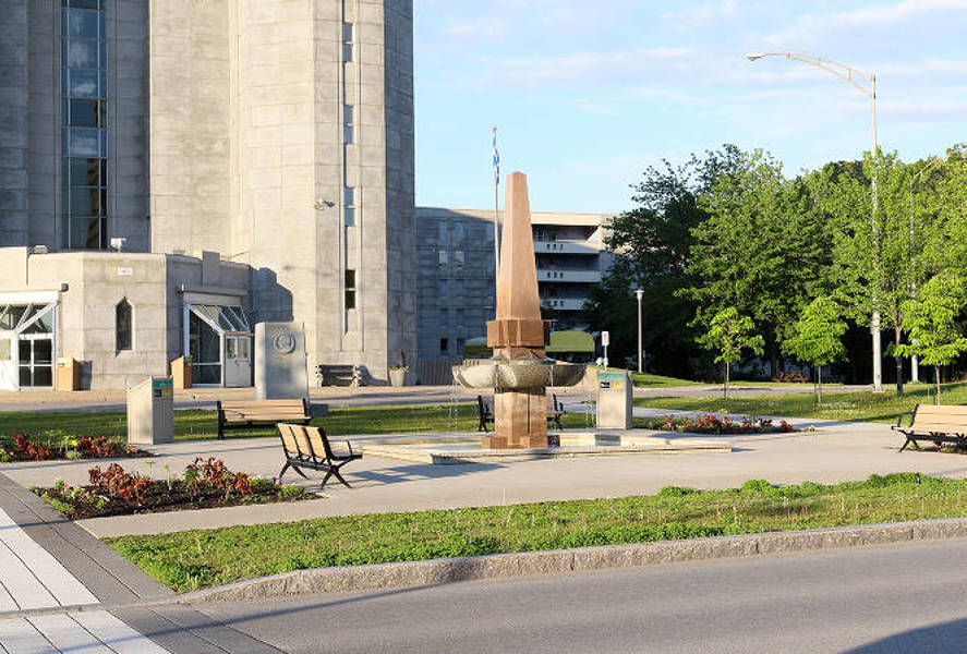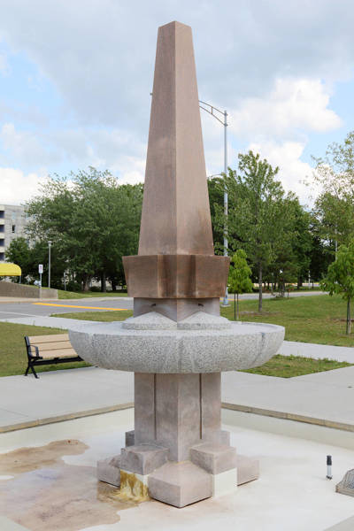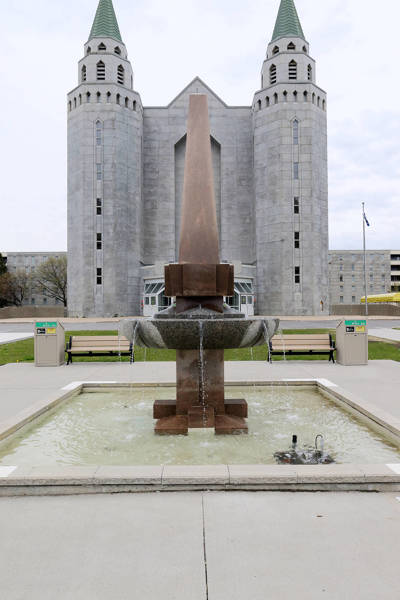 Le concepteur de la fontaine du Grand Séminaire est inconnu. Le bassin mesure environ 5 mètres par 5 mètres. Cette œuvre, fabriquée et installée en 1959, était localisée à l’origine dans le préau de ce qui s’appelait à l’époque le Grand Séminaire et rebaptisée pavillon Louis-Jacques-Casault en 1978.