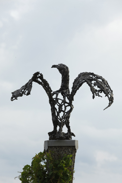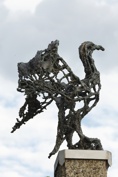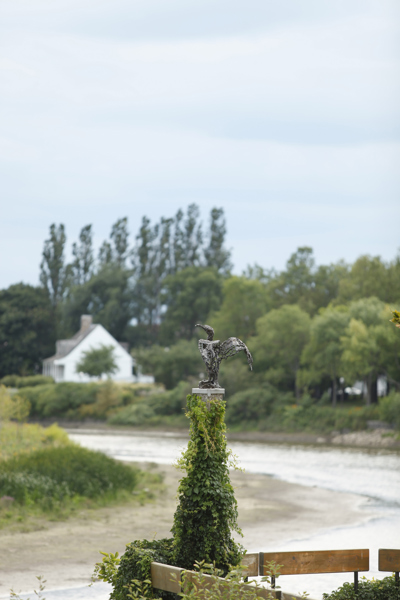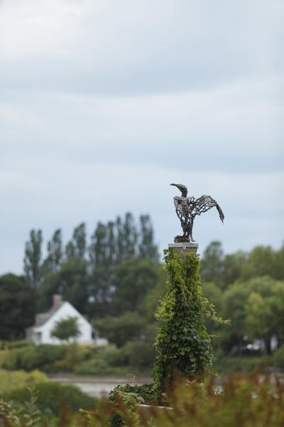 Depuis la restauration écologique des berges, plusieurs espèces d’oiseaux fréquentent la rivière Saint-Charles, comme le goéland à bec cerclé, le martin pêcheur et le canard noir. Le sculpteur les a représentés de façon stylisée, chacun perché sur un ancien fût de lampadaire. Au total, les bronzes de dix oiseaux, signés par le même artiste, jalonnent la rivière dans Saint-Roch, Saint-Sauveur, Limoilou et Vanier.
