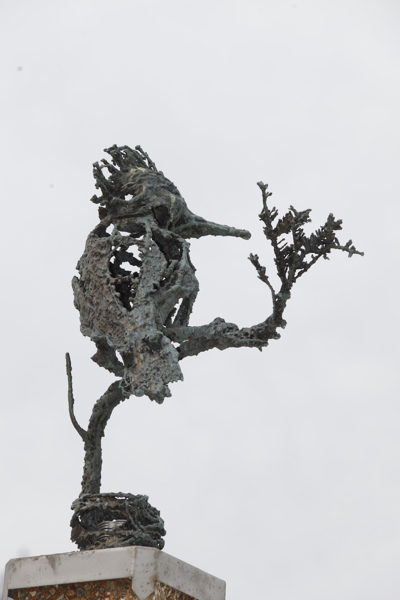 Depuis la restauration écologique des berges, plusieurs espèces d’oiseaux fréquentent la rivière Saint-Charles, comme le goéland à bec cerclé, le martin pêcheur et le canard noir. Le sculpteur les a représentés de façon stylisée, chacun perché sur un ancien fût de lampadaire. Au total, les bronzes de dix oiseaux, signés par le même artiste, jalonnent la rivière dans Saint-Roch, Saint-Sauveur, Limoilou et Vanier.