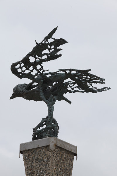 Depuis la restauration écologique des berges, plusieurs espèces d’oiseaux fréquentent la rivière Saint-Charles, comme le goéland à bec cerclé, le martin pêcheur et le canard noir. Le sculpteur les a représentés de façon stylisée, chacun perché sur un ancien fût de lampadaire. Au total, les bronzes de dix oiseaux, signés par le même artiste, jalonnent la rivière dans Saint-Roch, Saint-Sauveur, Limoilou et Vanier.