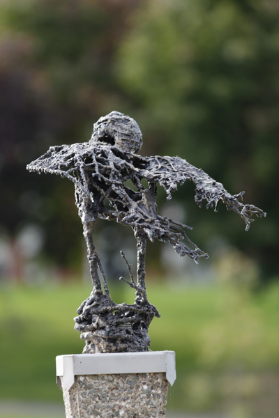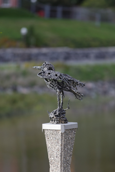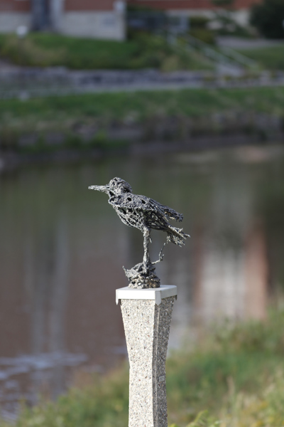 Depuis la restauration écologique des berges, plusieurs espèces d’oiseaux fréquentent la rivière Saint-Charles, comme le goéland à bec cerclé, le martin pêcheur et le canard noir. Le sculpteur les a représentés de façon stylisée, chacun perché sur un ancien fût de lampadaire. Au total, les bronzes de dix oiseaux, signés par le même artiste, jalonnent la rivière dans Saint-Roch, Saint-Sauveur, Limoilou et Vanier.