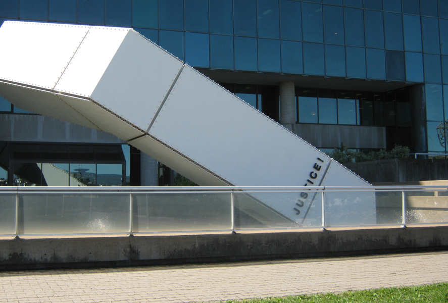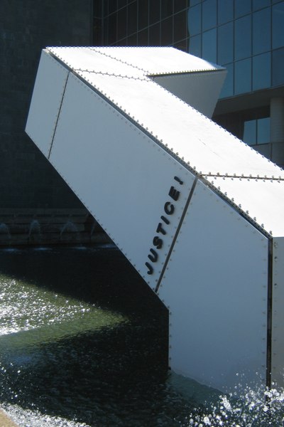 Cette œuvre de métal brut intégrée à un bassin est un cri de protestation contre l’apartheid. Elle affecte la forme d’un L renversé au bout duquel surgit une main de fer dressée derrière un grillage, tel un appel à l’aide. L’artiste s’est inspiré d’une photo montrant la main d’un Noir sud-africain derrière des barreaux.