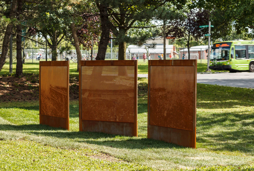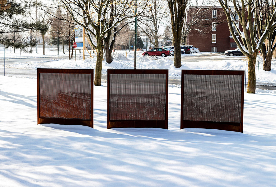 L’installation est formée de trois modules d’acier au volume épuré, chacun représentant une photographie de type polaroïd. Le secret de cette œuvre d’art réside dans les milliers de petits trous qui en percent la surface : quand la lumière s’y infiltre, elle révèle l’image d’une barque.
