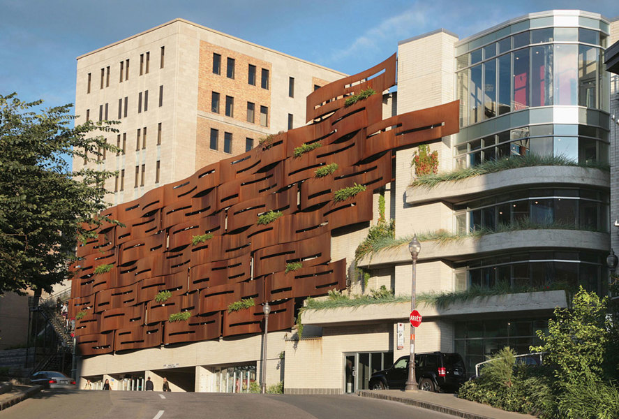 Cette œuvre tout en ondulations qui flamboie sous la lumière du jour est le fruit d’une étroite collaboration entre l’artiste et l’architecte. Tous deux ont tiré parti de la forme irrégulière du terrain pour magnifier la falaise avec une véritable œuvre d’intégration, une « archi-sculpture », selon l’expression de l’artiste.