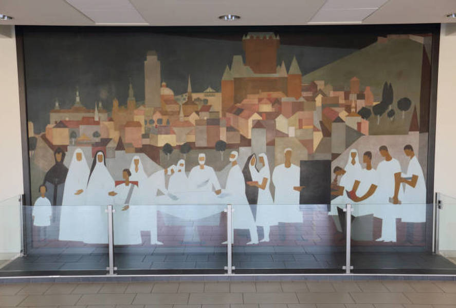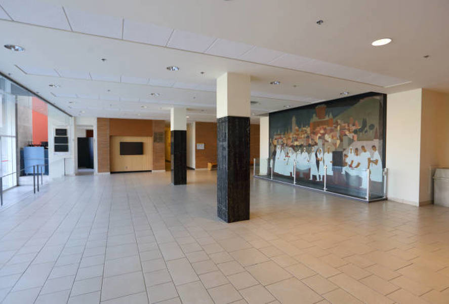 La peinture illustre l'histoire de la médecine à Québec. En arrière-plan est représentée le Vieux-Québec, foyer d'origine de la Faculté de médecine de l'Université Laval. Au premier plan sont représentés dix-neuf personnages rattachés au monde médical : religieuses, chirurgiens, infirmières, professeurs, étudiants, internes et patients. L'œuvre a été restaurée en 2011 et réinstallée à son emplacement original.