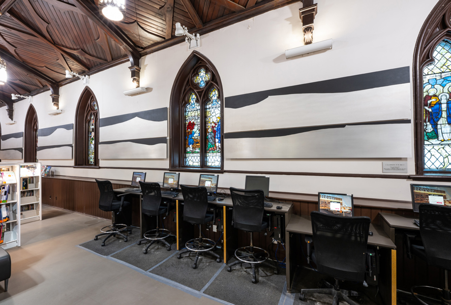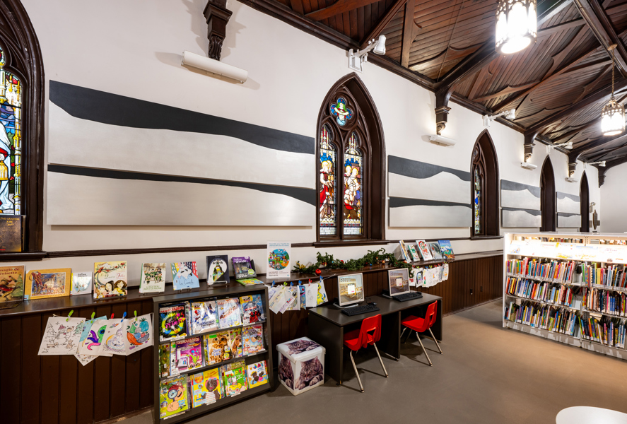 Cette œuvre a été acquise dans le cadre de la Politique d'intégration des arts à l'architecture et à l'environnement. Elle est située à l'intérieur de la bibliothèque Claire-Martin, sur le mur sud.