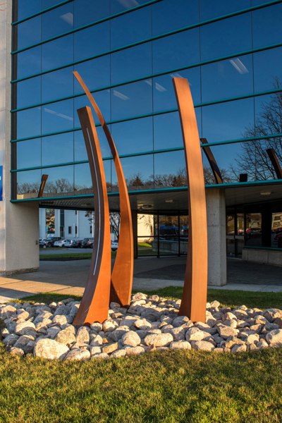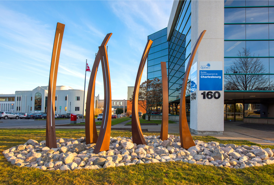 Inspirée par de multiples échanges entre l’artiste et un groupe de bénévoles de Charlesbourg, cette œuvre traduit des valeurs d’entraide et de fraternité. Elle prend la forme de neuf figures sculpturales dont la silhouette inclinée évoque certaines présences bienveillantes, des êtres attentifs à l’autre, dans une attitude d’ouverture.
