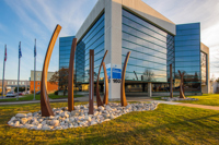 À la tombée du jour, chaque sculpture est éclairée de l’intérieur, reflet de la chaleur humaine qui anime les bénévoles. L’ensemble compose un parcours que l’on peut emprunter pour accéder au bureau d’arrondissement, lieu d’accueil symbolique de la collectivité.