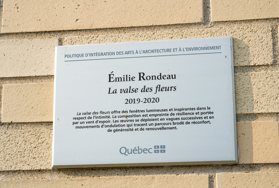 L'œuvre, située sur le site de l’hôpital de l’Enfant-Jésus, a été réalisée dans le cadre de la Politique d'intégration des arts à l'architecture et à l'environnement.