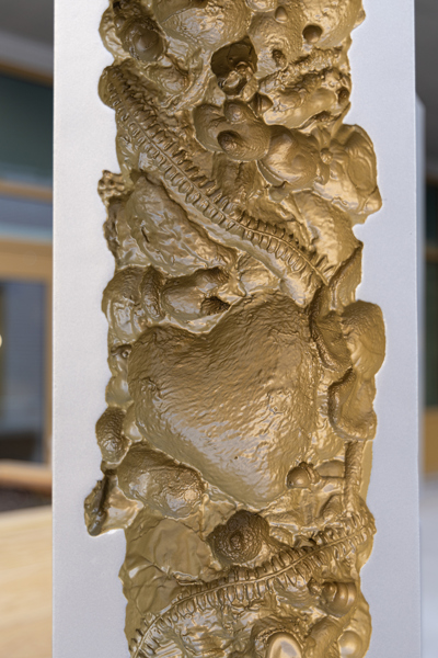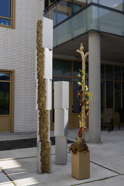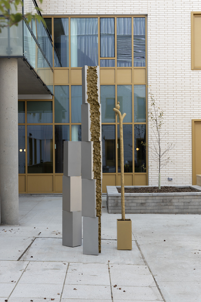 Avec deux sculptures dans les cours intérieures et une photographie dans le hall d’entrée, Pierre&Marie présente un ensemble cohérent, poétique et très sensible envers la clientèle par son accessibilité, son côté tactile et sa référence à la mémoire dans la dimension narrative propre à leur démarche artistique.