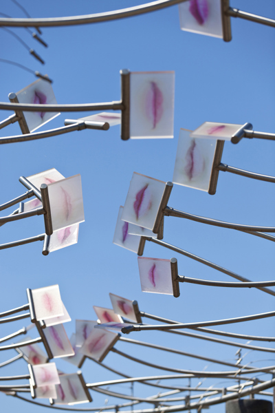 Conçu en hommage aux femmes qui ont contribué au développement de Québec, Le sentier des baisers agrémente le parc des Filles-du-Roi. Pour réaliser son œuvre, l’artiste a photographié des centaines de lèvres de femmes de tous les âges et a reproduit les images sur des plaques de verre. Il en a fixé un certain nombre à des tiges en acier inoxydable, qui elles-mêmes surmontent des colonnes en béton disposées sur deux rangées. Le promeneur qui déambule entre les colonnes a l’impression qu’un cortège de baisers l’accompagne. Des effets de bruine donnent à l’œuvre un aspect évanescent.