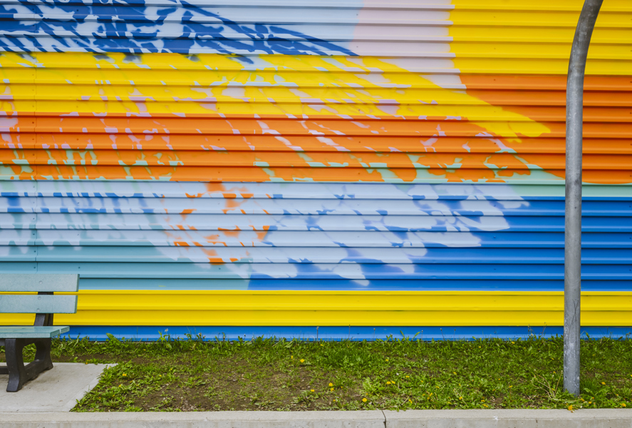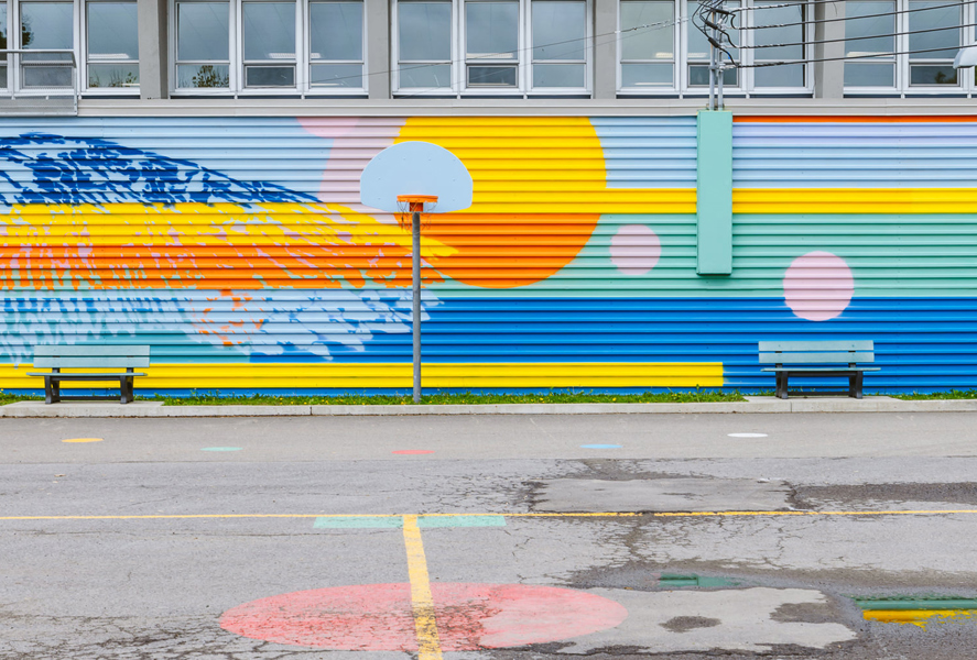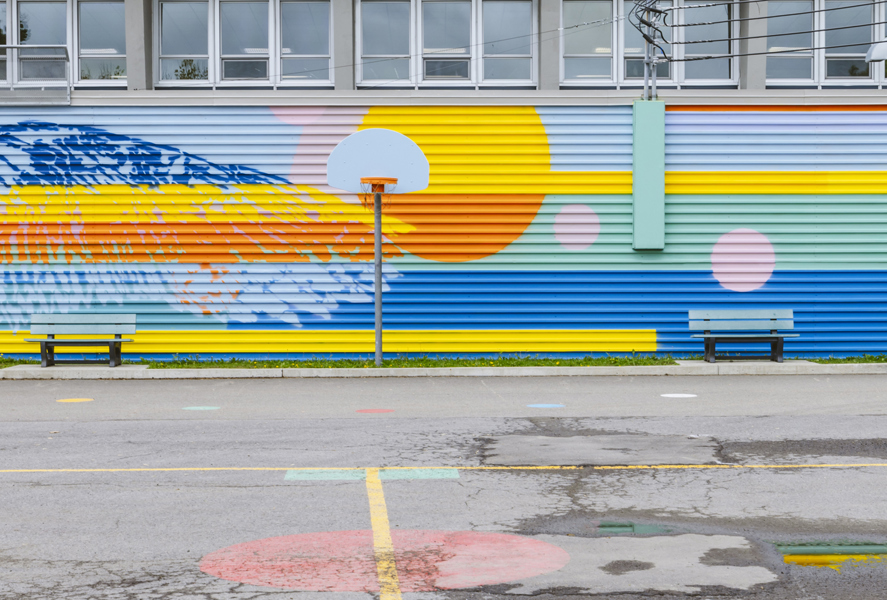 Cette murale a été réalisée dans un contexte de médiation culturelle avec les élèves de l'école spécialisée de l'Envol.