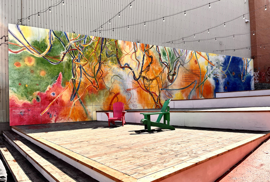 Il y a très longtemps serpentaient ici des glaciers, un fleuve, des vignes comme des lianes, des célébrations en canot. Je me rappelle des gens en amour sous les arcs-en-ciel; ici serpentait une rue, et fourmillaient les embouteillages, et zigzaguaient les allers-retours obstinés au long des trottoirs, comme les gestes d’un.e tisserand.e mûrissant un tissu social émaillé de paroles et de pas. Il y a très longtemps serpentaient ici les racines d’un ciel comme une échelle. Ces racines puisaient derrière les portes; au creux des cœurs, des têtes et des mains, là où se lovent les rêves. - Alice Guéricolas-Gagné