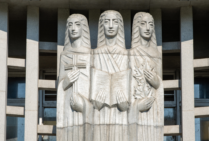 Trois personnages tiennent dans leurs mains une feuille d’érable, un livre ouvert et une croix, emblèmes respectifs de la Patrie, de la Connaissance et de la Foi. L’œuvre a été dévoilée lors de l’inauguration de l’École normale Laval, vouée à la formation des maîtres jusqu’en 1970 et devenue aujourd’hui un pavillon du cégep Garneau.