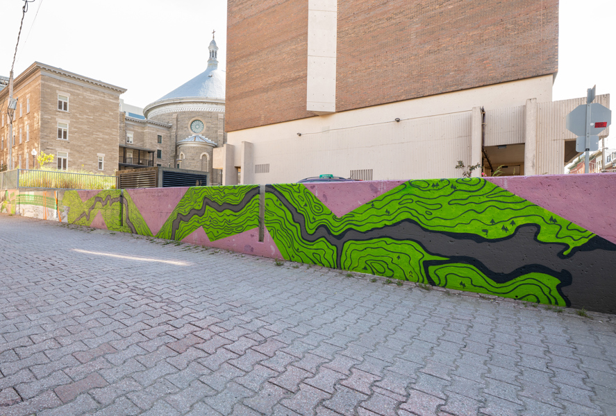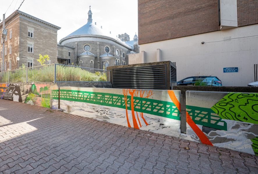 Les murets qui accueillent les interventions artistiques sont situés de part et d’autre des appartements La Chancelière ainsi que sur la portion piétonnière de la rue de La Chapelle