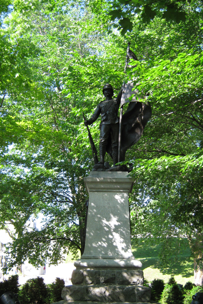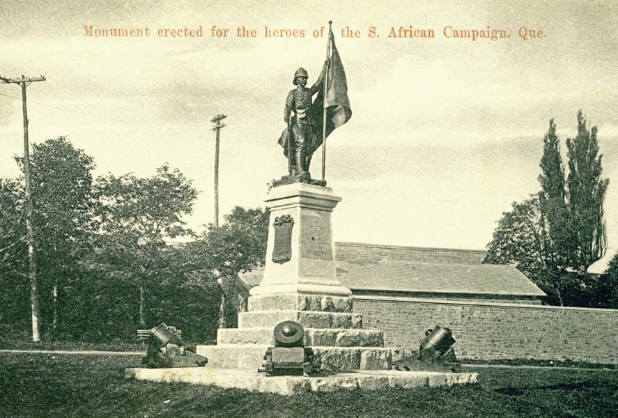Ce monument rappelle que 12 soldats québécois ont été tués lors de la guerre des Boers (1899-1902), qui a opposé la Grande-Bretagne et les colons afrikaners en Afrique du Sud. Il s’élève sur les lieux mêmes d’où est parti le premier contingent canadien. Portant l’uniforme colonial, le soldat tient d’une main une carabine et de l’autre le Red Insign, le drapeau canadien de l’époque.