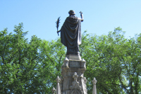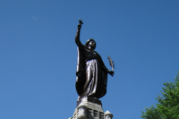 Le monument-fontaine de style néogothique commémore les 300 ans de l’établissement de la foi chrétienne au Canada, avec l’arrivée des missionnaires récollets en 1615. La statue personnifie la Foi tenant une croix ainsi qu’une palme, récompense divine. Les bas-reliefs illustrent la célébration de la première messe, la construction de la première chapelle et les premiers voyages des Récollets en pays montagnais et huron.