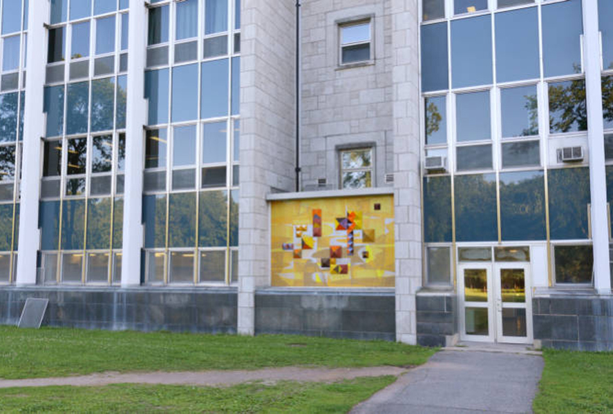 Cette mosaïque est située sur la façade est du pavillon Adrien-Pouliot de l’Université Laval.