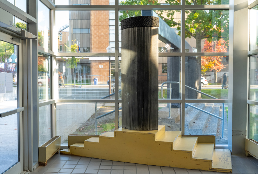 L’œuvre se déploie en trois temps à l’intérieur et à l’extérieur du bâtiment.
