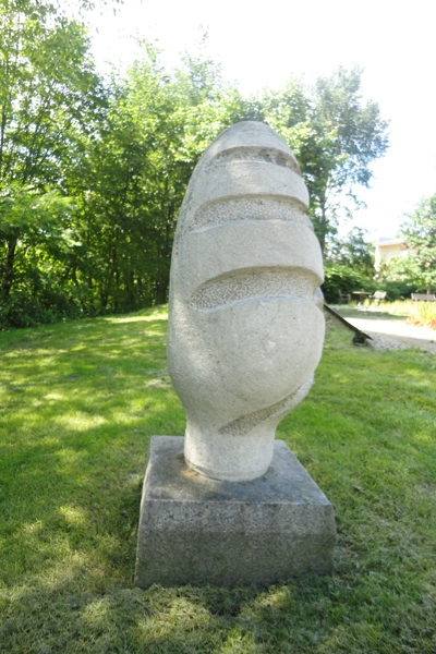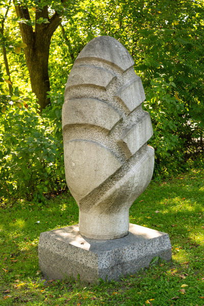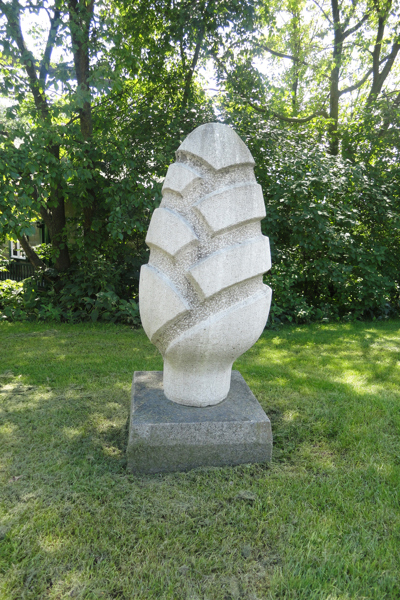 Cette sculpture en pierre calcaire a été taillée sur place, dans le parc de la Forge, situé en bordure de la côte de Cap-Rouge. Elle représente un cône de pin, l’un des emblèmes figurant sur les armoiries de l’ancienne ville de Cap-Rouge.