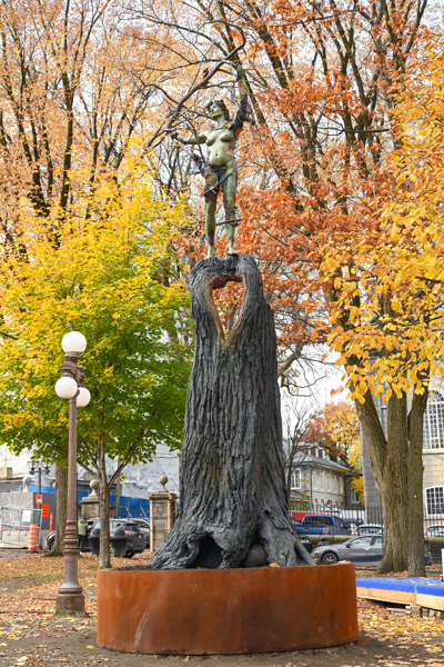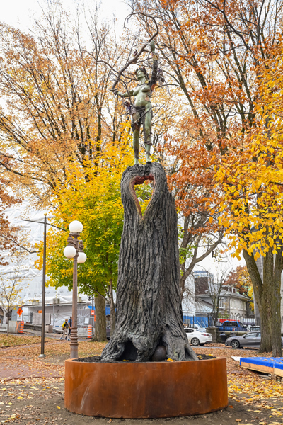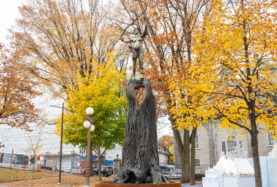 Cette œuvre est temporairement exposée dans un caisson, dans l’attente de la fin des travaux dans le secteur de la rue du Corps-de-Garde. Par la suite, elle sera installée de façon permanente à l'emplacement précis de l'arbre au « boulet ».