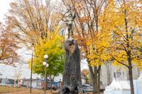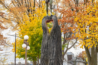 Cette œuvre d’art public rend hommage à l'orme d'Amérique qui se dressait autrefois à l'intersection des rues Saint-Louis et du Corps-de-Garde, au cœur du Vieux-Québec. Planté au tournant du 20e siècle, l’arbre avait emprisonné à sa base une ancienne bombe incendiaire convertie en chasse-roue pour protéger les maisons du passage des voitures à cheval.