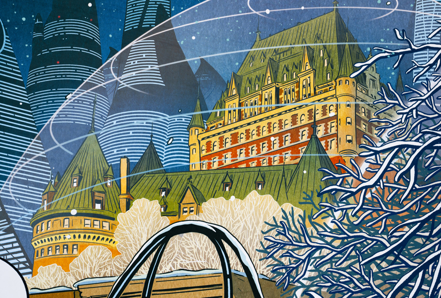 Cette bande dessinée nous invite à un voyage narratif dans la ville de Québec : un portrait brossé en quatre époques, soulignant différentes facettes de sa personnalité.