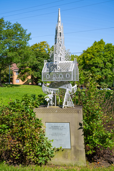 Cette sculpture réunit des éléments particuliers du patrimoine bâti, religieux et humain de Sillery, désigné site patrimonial en 1964. Les éléments figuratifs sont empilés comme un totem créant une figure hybride à la fois symbolique et mythique.