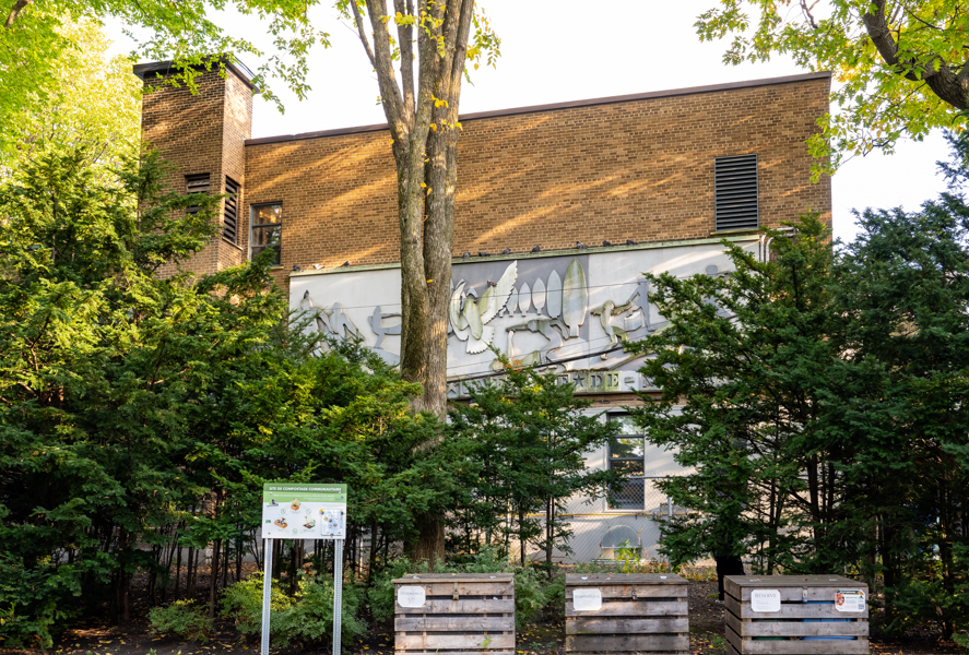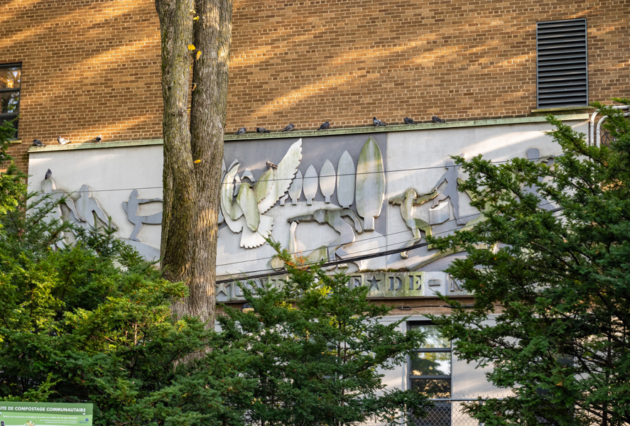Cette murale se présente sous la forme d’un triptyque pour illustrer les trois actes d’une pièce de théâtre. Elle regorge de symboles associés à l’art dramatique, la poésie, la littérature, la peinture et la sculpture, comme un hommage à l’esprit de création qui anime l’être humain.