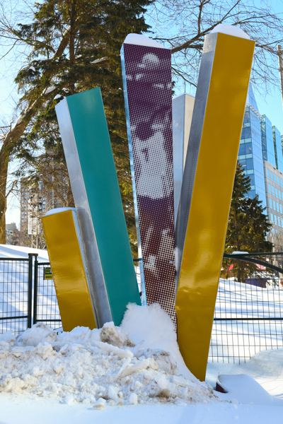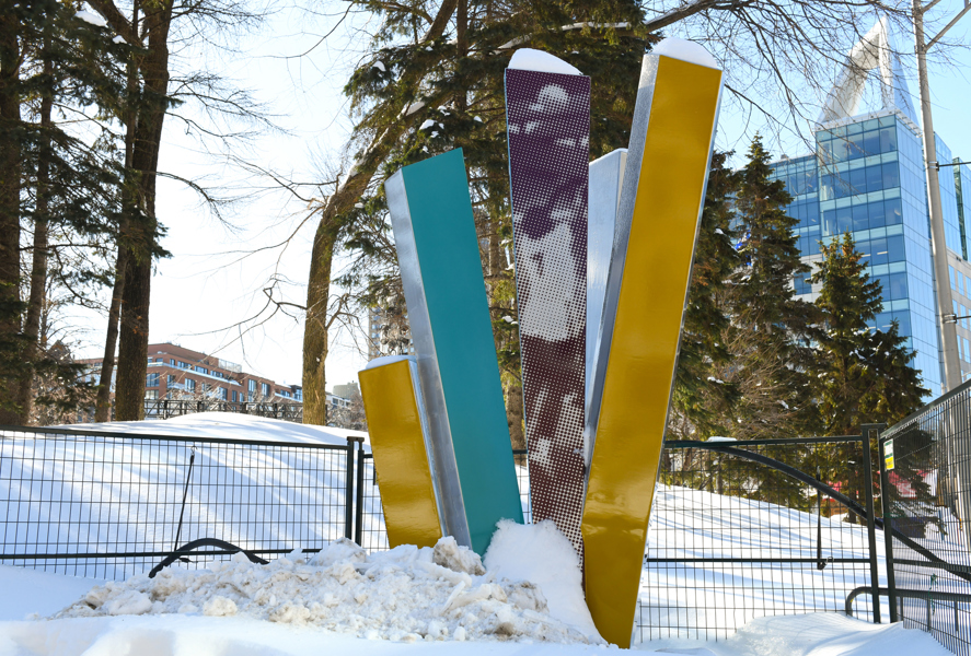 Ce bouquet de colonnes entrecroisées témoigne de la fougue de la Superfrancofête, ce festival international qui ravit Québec en août 1974. La forme explosive et colorée traduit l’énergie du rendez-vous, fréquenté par un million de personnes. L’application mobile Québec 1974 propose divers documents d’archives pour revivre ces 11 jours hors du commun.