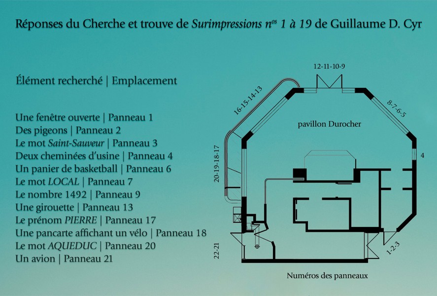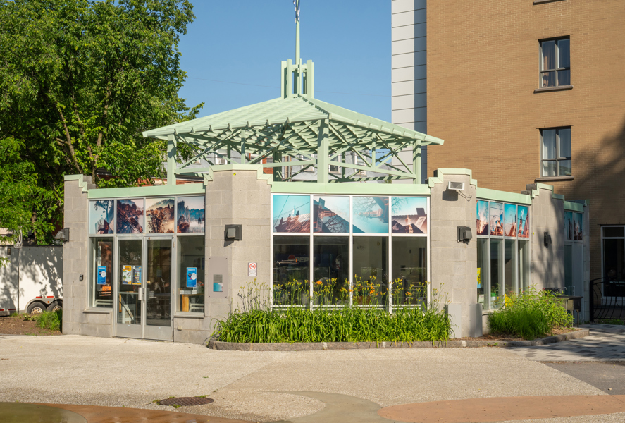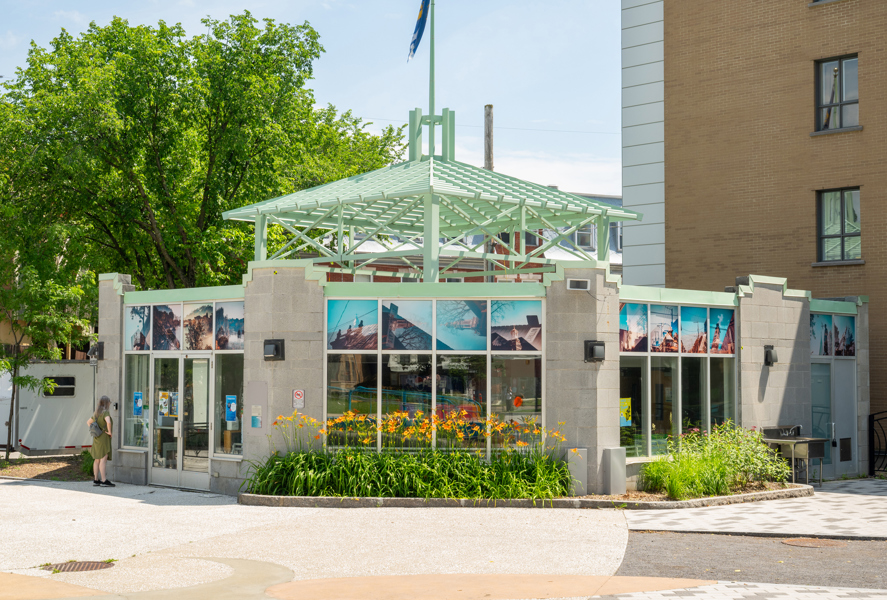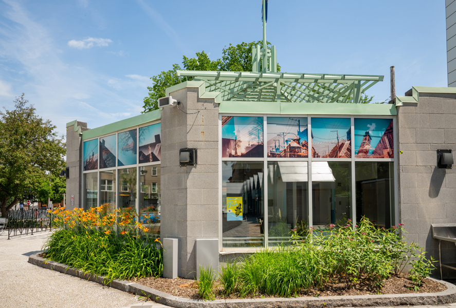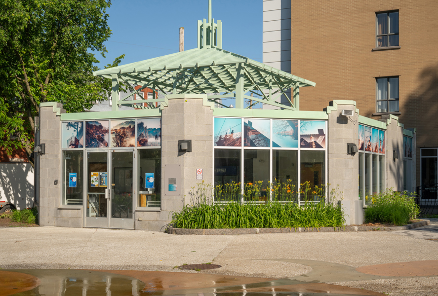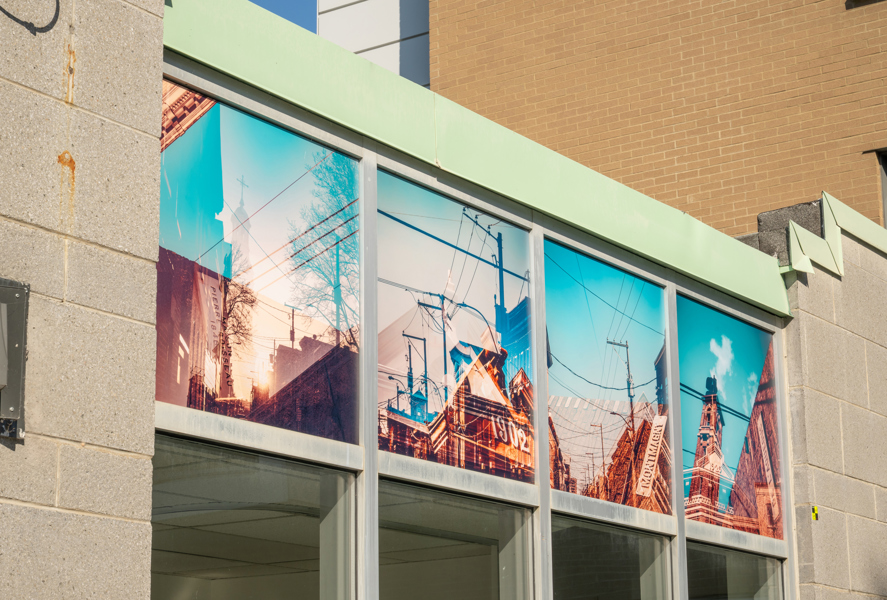 Inspirée d’ateliers de photographie offerts à des enfants, cette série d’images traduit l’essence du quartier Saint-Sauveur. Les vues en contreplongée mettent l’observateur dans la peau des participants d’âge préscolaire, puisqu’elles ont été prises à la hauteur de leurs yeux. Les compositions visuelles mêlent éléments d’architecture et nature urbaine. Elles témoignent d’ailleurs des activités de familiarisation à l’art et au patrimoine bâti réalisées avec les enfants. La technique de multi-exposition employée par l’artiste rappelle les jeux de réflexion à la surface des fenêtres. Obtenu par une superposition d’images effectuée directement dans la caméra, le résultat est issu d’un mélange ludique de décisions artistiques et d’heureux hasards.