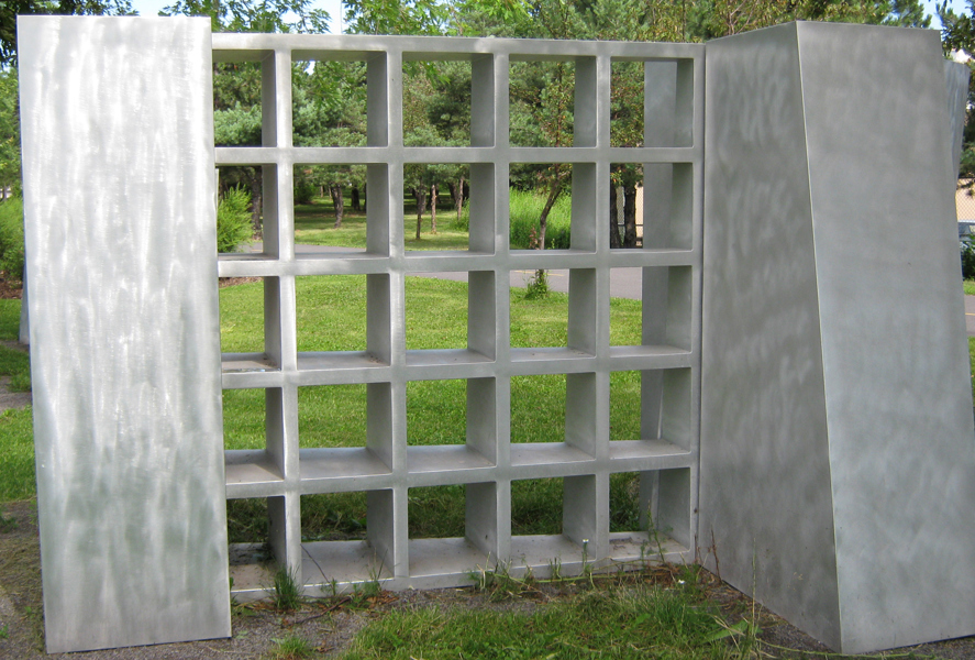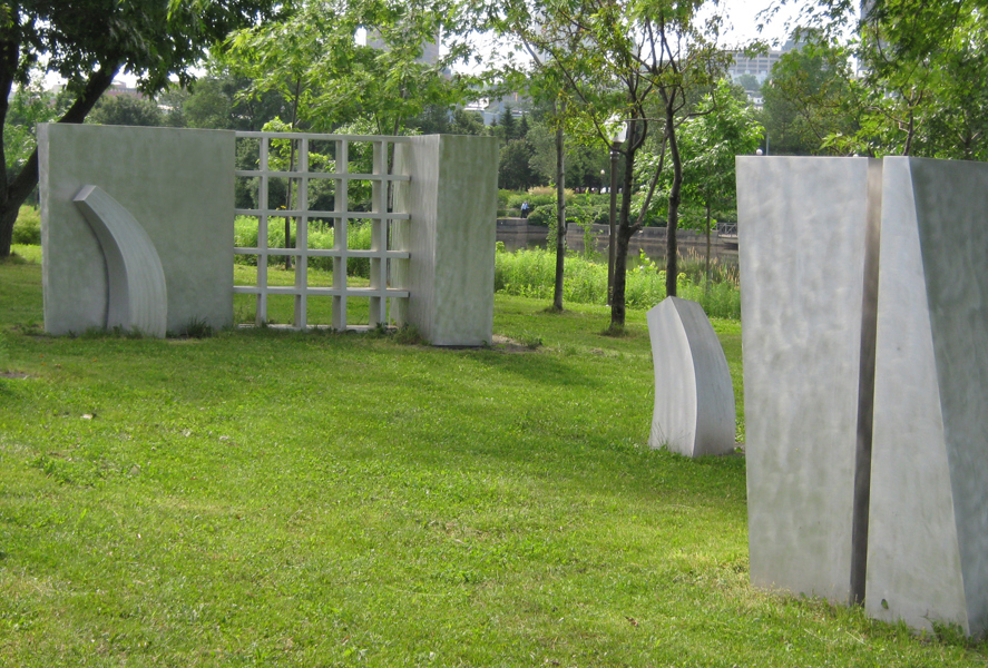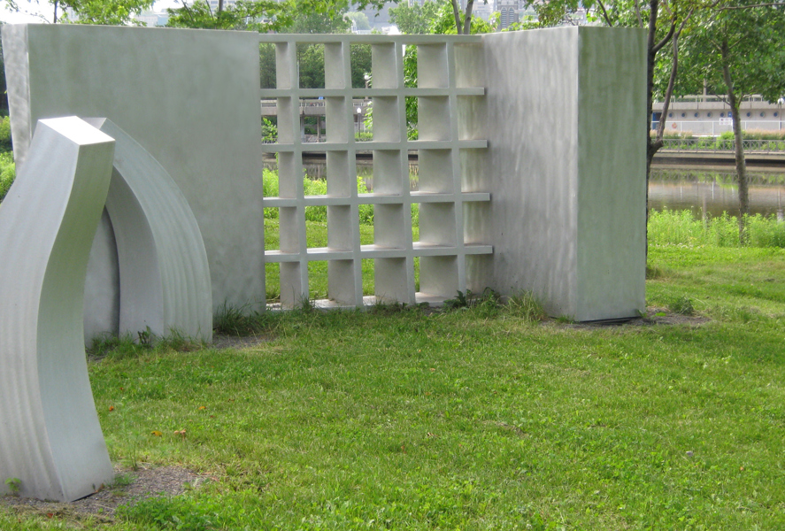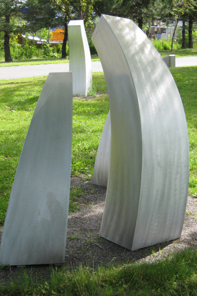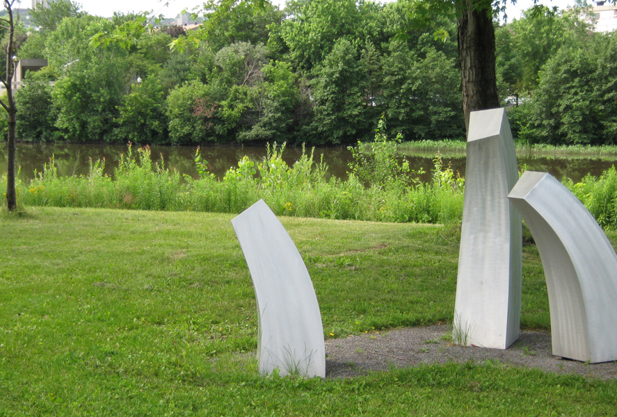 L'artiste se fait géographe dans cette œuvre installée sur la rive gauche de la rivière Saint-Charles. Ces 11 éléments en aluminium brossé matérialisent les particularités géologiques de Québec. On peut y voir la faille de Logan, fracture de l'écorce terrestre qui passe à travers la ville. La grille ajourée est un clin d'œil aux remparts de la cité fortifiée.