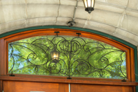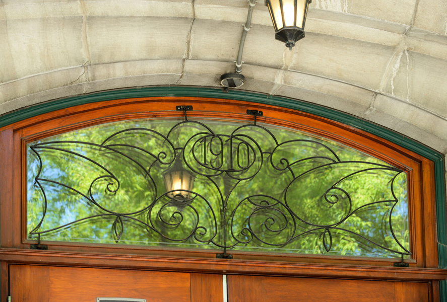 Un décor de fer forgé finement travaillé en arabesques, dans l’esprit Art nouveau, orne les portes de l’édifice tout en s’intégrant à l’architecture.