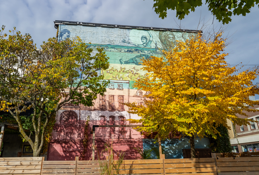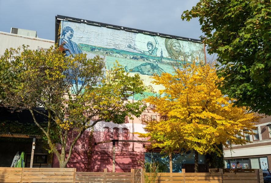 La murale est inspirée de l'histoire du quartier Saint-Sauveur et intègre une précédente murale, réalisée plusieurs années auparavant par l'artiste Serge Légaré et chère aux citoyens. L'œuvre est le legs de la Sympathique place ouverte à tous (SPOT) qui a occupé l'espace devant la murale à l'été 2016. L'œuvre a été conçue par Gitane Caron et réalisée par Sautozieux.