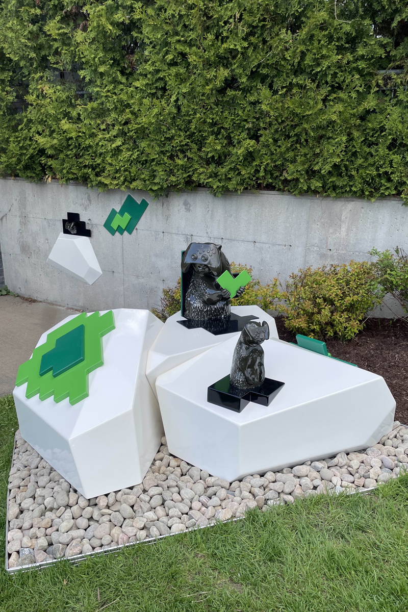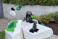 De ces rochers polygonaux émerge un clan d’animaux fantastiques tout droit venu d’un univers parallèle. Ces personnages mutants transportent avec eux des fragments d’un monde numérique dont l’esthétique se situe à la limite de l’abstraction géométrique et de l’art du pixel.